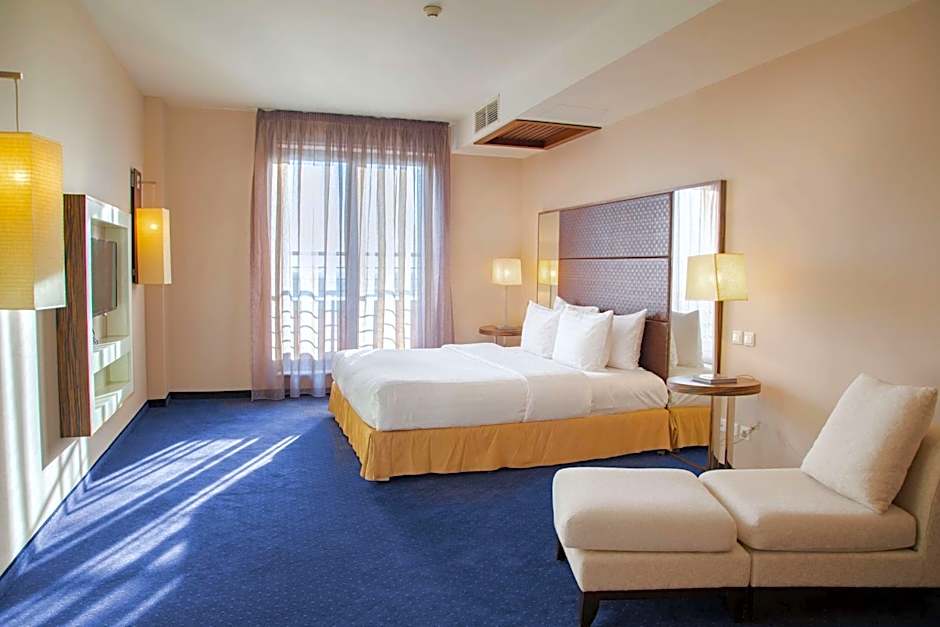 This suite offers a hot tub. This spacious suite consists of 1 living room, 1 separate bedroom and 1 bathroom with a bath and free toiletries. The air-conditioned suite provides a flat-screen TV with streaming services, soundproof walls, a tea and coffee maker, a seating area as well as city views. The unit offers 1 bed.
